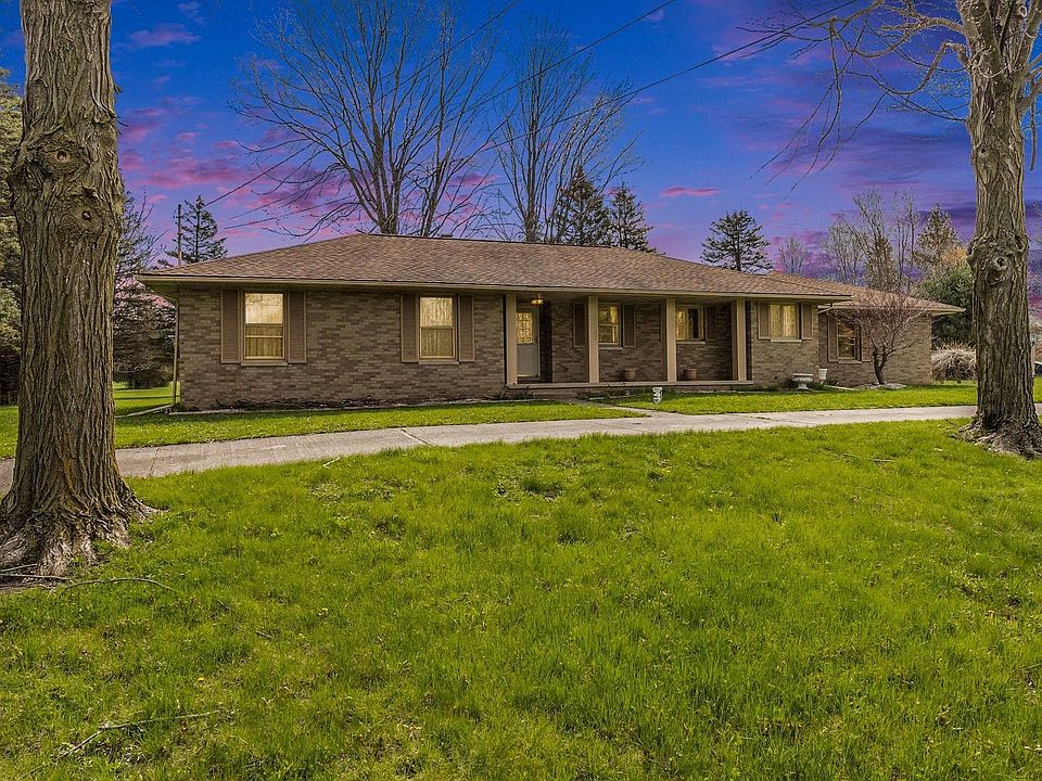 Charming all brick one story home on 2.5 acres in a great location. (beautiful yard) Large circular driveway, Country but yet minutes from town. Roof in 2008, new hot water heater, new sump pump, Some up-dating could make this a gorgeous home, oversized garage, whole house Generac, Some hardwood floors under carpet, large living room with natural burning fireplace, extra large garage, city sewer, ready for immediate occupancy, Great potential!!!