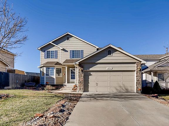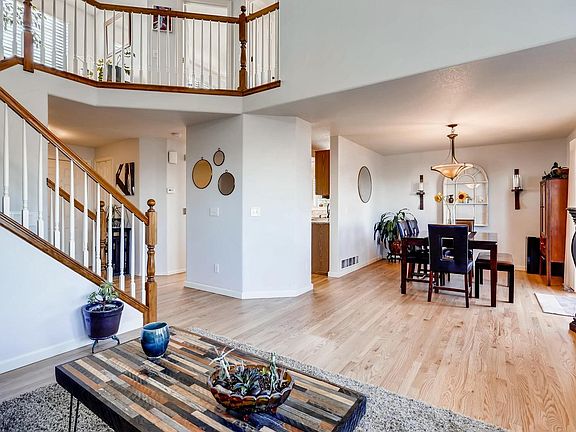 This beautiful upgraded home features a floorplan that offers space and privacy, plus a finished basement! Welcome inside to newly refinished hardwood floors throughout the main level, extending from the entry into the dramatically vaulted living room with mountain views through the picture windows. Open kitchen boasts slab granite countertops highlighted by the tile backsplash. Stainless steel appliances include smooth top range, dishwasher, microwave, trash compactor and refrigerator. Enjoy meals in the breakfast nook or in the formal dining room that has access to the elevated deck with pergola. Flagstone steps take you to the patio with another pergola. Master suite is on a separate level, hosting a private bath with separate shower and soaking tub, plus a walk in closet. Secondary bedrooms on the top level utilize a full hall bath. Finished basement has a large exercise room with adjacent 3/4 bath and a flex space that is used as a study area. Central air, Cherry Creek Schools