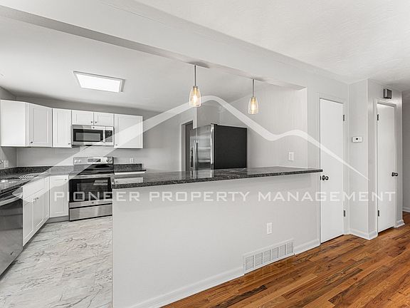 Welcome to this newly renovated half-duplex located in the desirable neighborhood of Lakewood, CO. This beautiful 3-bedroom 2-bathroom property offers an array of amenities that are sure to impress. As you step inside, you'll immediately notice the beautiful hardwood floors throughout the main living space and natural light that creates a warm and inviting atmosphere. The modern kitchen with laminate tile floors boasts granite counters and stainless steel appliances including a side-by-side refrigerator, electric range oven, mounted microwave, and dishwasher, perfect for the aspiring chef in you.
