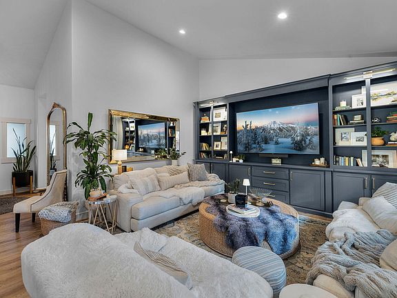 This stunningly remodeled single-level home feels brand new! Located in the highly desirable Mountain Pines neighborhood of SE Bend, it offers an inviting open-concept great room with modern yet warm finishes. Recent upgrades include a sleek tile-surround gas fireplace, new quartz countertops, simulated wood flooring, luxury carpeting, floor to ceiling cabinetry, contemporary lighting and plumbing fixtures, fresh interior paint, and a new HVAC system. The home offers three bedrooms, including a spacious primary suite with a double vanity, plus a large utility room with a deep sink and beverage cooler. Nestled on a serene .17 acre lot with mature landscaping and a tranquil water feature, this home backs to a neighborhood common area, offering both privacy and convenience, just minutes from parks and golf courses!
