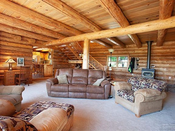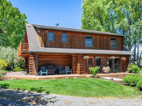 Beautiful custom built Norwegian scribed log home on 5.12 acres with irrigation & mtn views! 36X48 garage/shop with room for RV. Fenced. Relax in Oregon Hot Springs spa, overlooking the pond and pasture as you gaze at the mountains. Garden and greenhouse and 4000sf fenced dog enclosure with dog house and kennel. Home sits on 5.12 acres parcel and adjacent 5.19 acres has a pole barn on it. Beautiful mountain views