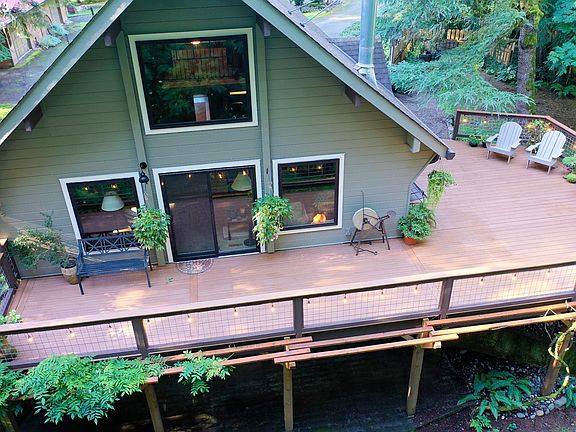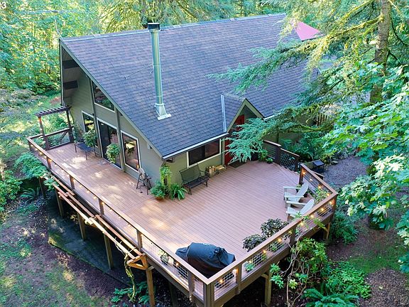 This delightful cedar home on 3 acres is tucked among the towering trees giving you a feeling of your own private retreat. This 2484SF chalet home features 3 bedrooms & 2 full baths. Bring the outdoors in and capture a feeling of nature from the dramatic wall of glass overlooking the large, wraparound trex deck. The living room features a soaring ceiling with a large ceiling fan and a gorgeous stone fireplace. You will be able to access the deck from either the sliding glass door or a side door. The master bedroom is located in a loft above the living room and features a walk-closet, built in drawers for storage and a cozy sitting room - perfect for a good book! The finished basement has a bonus room with glass slider to a patio, two bedrooms, full bath and storage closets. The large shop features a tool shed, wood work shop and two more bays for parking or storing all of your toys. Looking to have chickens? You will love the adorable custom chicken coop with enclosed run cage for your girls. Raised garden beds will delight the gardener in you! This home is located 5 miles from St. Helens which is an easy commute to Portland. Don't miss this opportunity to have your own private retreat.