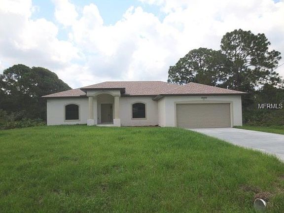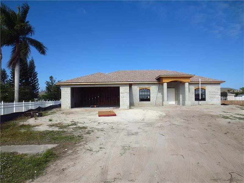 COMPLETE!! Be the first owner of this new 2017 Gasparilla model, Key West Style home. This is the largest spec house available in the area, so don't wait too long! One year builder warranty provided for peace of mind. Features include: wood cabinetry and granite countertops in kitchen, full stainless steel kitchen appliance package, breakfast bar, breakfast nook, split plan for the bedrooms, master bath has both a shower and a garden tub, with a wood vanity with granite top, guest bath has wood vanity and granite top, 25 yr manufacturer warranty on shingles, rocker switches throughout, 14 Seer A/c system with heat pump, hurricane panels for all windows and doors, raised panel interior doors, 40 gal water heater, knockdown texture on walls and ceilings, plant ledges and volume ceilings! large lanai. The Gardens of Gulf Cove is a deed restricted subdivision, with underground utilities, sidewalks, community rec buildings, tennis courts and two swimming pools, plus parking for RV/boat storage. (extra charge) Taxes are for the lot only. House can be done in about 60 days! Most pictures are of a completed house. There are some pictures which show the current stage of construction, incl front picture.