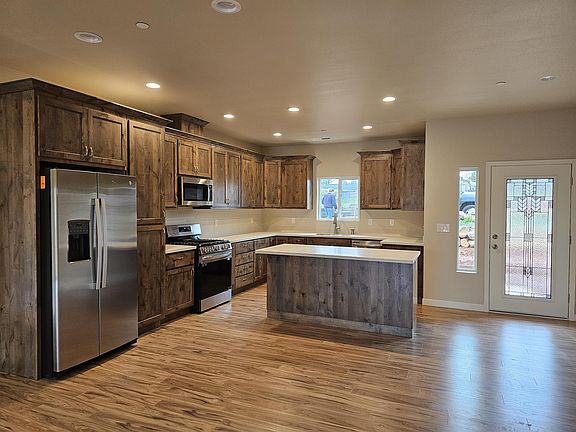 **PENDING APPLICATION** Newer custom home built in 2023 in PARADISE! This beautifully crafted home features SOLAR, dual pane windows, light colored Corian counters atop warm walnut cupboards, large island in the kitchen with additional drawers and pantry underneath, built in spice rack AND lazy-susan corner cupboards! You will love the farm style sink with pull out faucet, gas stove, dishwasher, micro hood and side by side refrigerator (with icemaker) all in stainless finishes!