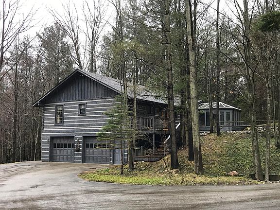Hamlin Township-Custom built "Old Virginia" log home on 5acres w/pond nestled in the trees for peace & privacy. Lovely 2 bedroom, 2.5 bath home offers cathedral ceilings, skylights, expansive windows, fieldstone fireplace (electric), expansive upper/lower level decking & patios, plus 2 car attached garage & 3 car detached garage. Open floor plan with spacious kitchen, pantry, custom cabinets & countertops. Master suite w/walk-in closet, full bath & access to private deck overlooking the woods & water. Guest room has an attached all-season room w/plenty of windows & makes a great artist studio. 2nd full bath completes the main floor. Lower level walkout offers additional living space, ½ bath, workshop & attached garage. Close to Hamlin Lake, Lake Michigan & more. Buyer to verify all info