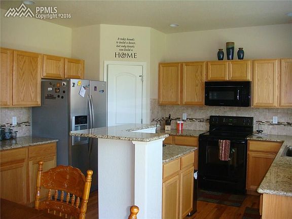 BEAUTIFUL 2-Story - 3 Years New! This stunning home is situated on a huge corner lot, with professional landscaping, fenced back yard & views of the mountains & Garden of the Gods! Bright, neutral great room & cozy kitchen & dining area boasting wood floors. This home features a family-friendly floor plan, and puts all 4 bedrooms AND the laundry on the upper level! Walk-out to fenced back yard from the dining area. Granite countertops/custom backsplash in kitchen - Awesome island! Master Bedroom has adjoining 5-pc w/walk-in closet. NEWER ROOF! A/C! 3-Car Garage! Quiet neighborhood with easy access to the Powers Corridor, shopping, dining, military bases & I-25.