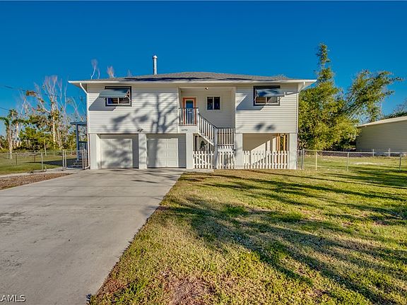 Located in the quaint, historical town of Bokeelia this stilt home features 3br, 2ba and is nestled on a half acre, and is being turnkey with some exclusions. FLOOD INSURANCE NOT REQUIRED! The living area is impeccable and features a wood burning fireplace, brand new hardwood floors and 10ft ceilings with crown molding, and leads to the wrap-around, screened-in lanai on the main living area. The kitchen has ceramic tile, granite and stainless steel appliances. The lower level has a finished workshop with double garage doors and an additional overhead door on the side of the home. The property has a fenced in yard and a 42X10 cement slab off the main driveway for a motor coach or boats. No Hurricane or Flood damage! This property is move-in ready and is located less than 3 miles to Pineland Marina.