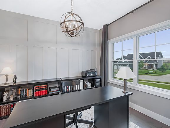 Beautiful 2 story 5 bedroom home located on a cul-de-sac in the Legends of Hopewell Creek subdivision! The main level boasts great room with stone fireplace open to kitchen with cherry cabinets & quartz countertops, office with sliding door, formal & informal dining areas, mudroom and laundry room. Spacious master suite up with 3 additional bedrooms. Finished walkout lower level boasting rec room with fireplace, exercise room, bedroom and bath. Deck, patio, radon mitigation system & 3 car garage. Pleasant Valley Community School District.