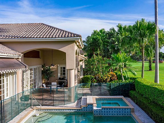 Your own private oasis, this 4 bed/4 bath home is tucked away on a cul-de-sac in the coveted Broken Sound Club. With almost 3500 sf of smart living space, this open, airy layout features a generous living area punctuated by a wide living room with gleaming, sunlit floors. In addition to this ''center of it all'' vibe, you'll find 3 spacious bedrooms with en-suite baths, situated for maximum privacy in separate corners of this one-level home. An additional den/bedroom plus full bath could serve as an ideal work space. The entire living room, kitchen and master bedroom boast gorgeous views of the golf course, with a distant view of the lake. On a steamy summer day, relax by your private pool, on this lush and impeccably landscaped property. All your family needs are within close proximity.