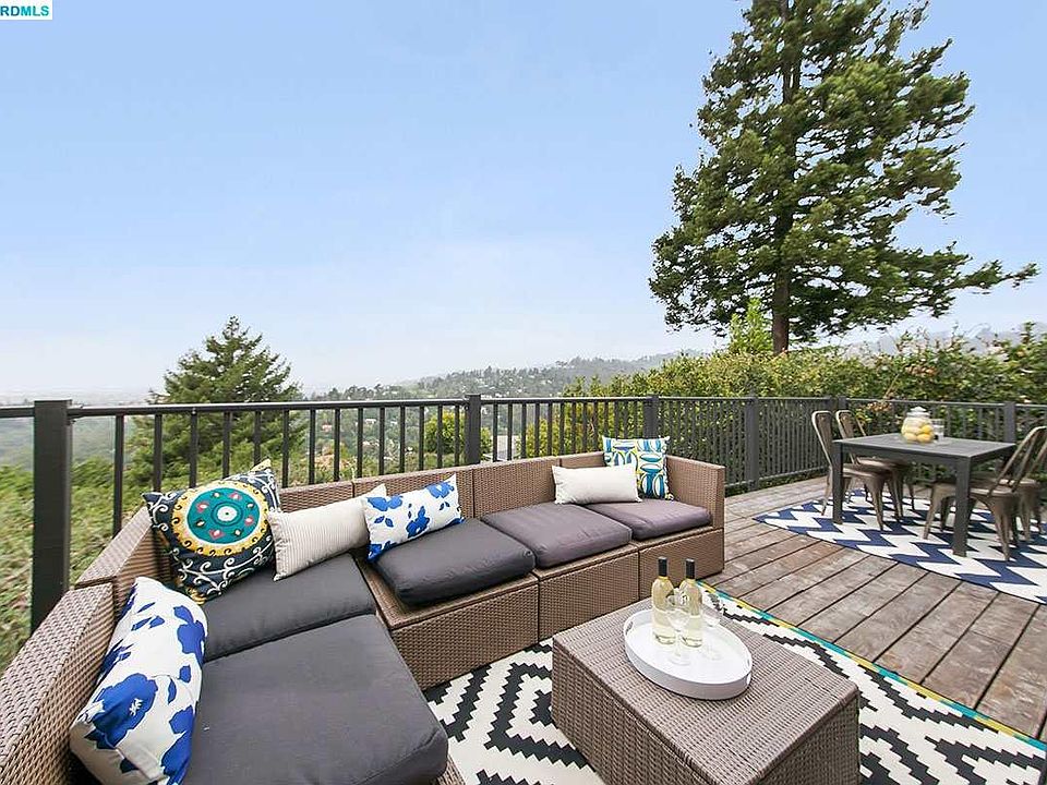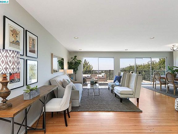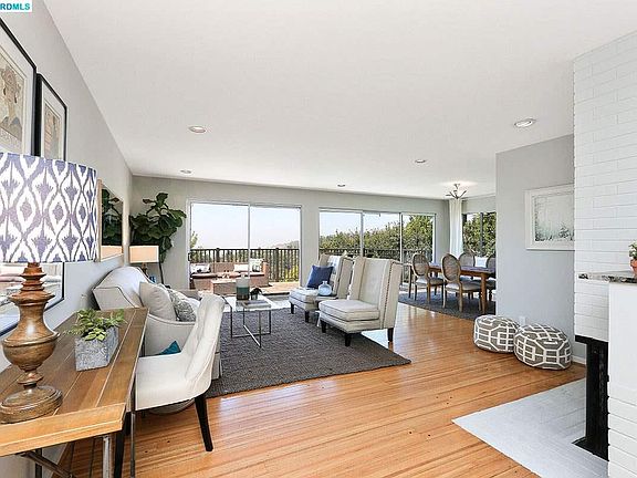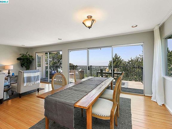 Bay views, light, open floor plan: Montclair Mid-Century 4+BD/3BA w/sweeping bay views & private second level (w/separate entrance & kitchenette) for guest quarters/office/media. Near Montclair Village, vast regional park system. Remodeled kitchen, att'd 2-car garage w/internal access, dual-zone AC.