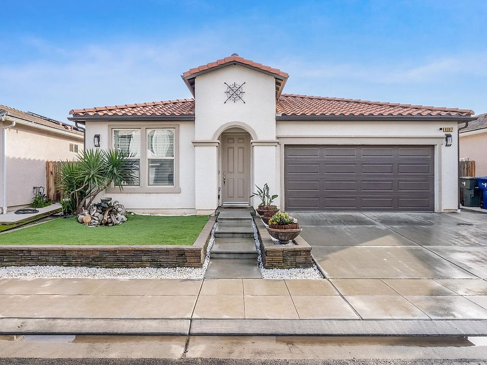Discover a charming Spanish-style abode part of Clovis Unified School District, boasting 3 beds and 2 baths. This newer constructed Granville home built in 2017 encompasses modern living with an open concept, featuring outdoor entertainment space, white cabinets, and sleek quartz countertops. Enjoy the convenience of a walk-in closet and utility room. The kitchen showcases stainless steel appliances, a pantry and a cozy breakfast nook - creating a perfect home for both comfort and aesthetics. The residence offers a blend of style and functionality with synthetic turf and laminate floors.