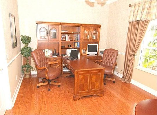 This "Parade of Homes" winning model is hard to duplicate at this price.. Mediterranean Architecture with Stack Stone Facade and a Barrel Tile Roof, Gourmet Kitchen includes: Sutton Cliff Cherry Cabinets with Dental and Crown Molding, rollout shelves, Granite and Corian Counters, GE Profile Appliances, Double Ovens with Convection, Convection Microwave, Artica Model Refrigerator and Reverse Osmosis Water Filtration System. Professionally Decorated Model featuring Custom Wall Covering sand Window Treatments, Textured Columns and Crown Moldings, Victorian Base Moldings, Corian Window Sills, Designer Tile with Accents, Hardwood Flooring and Upgraded Level 4 Carpet. The formal area includes Arches, Columns, Coffered Ceiling Art Niches, and a Fireplace with Wood Mantel and Marble Surround. The 35' Family Room boasts a media Center with Gas Fireplace and Corian Tops. The Bonus room/Game room includes: the ultimate built in Entertainment Center with Wet Bar, 50" LCD TV, 8' Matching Pool Table, refrigerator, and a Half Bath. The oversized Lanai overlooks the Lush Landscape with an outstanding Rock Pool and Spa with Grotto...