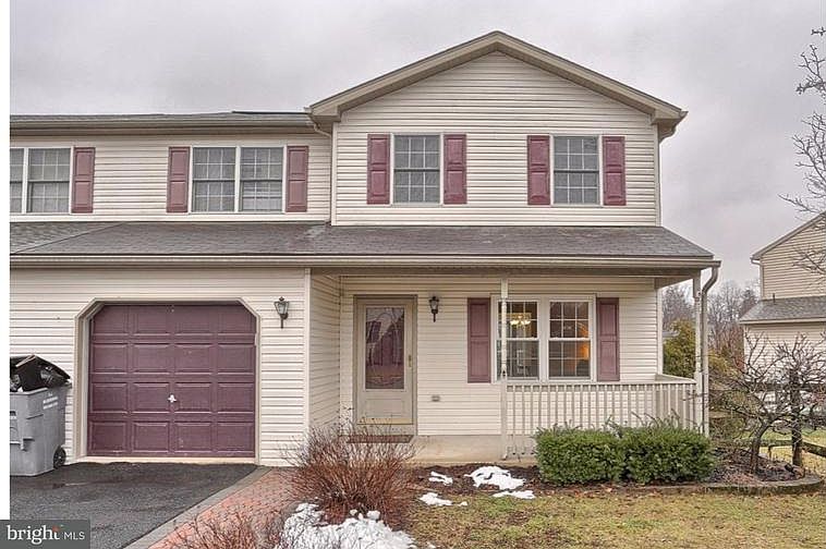 3 bedroom, 2 1/2 bath semi with many updates including new exterior AND interior paint, some new flooring, etc. The current owner has installed an electric fireplace in the living room, kitchen island ceiling lights, new tiling in the master bathroom, new ceiling fan in the master bedroom, glass shower doors in both full bathrooms, garage floor and walls painted, built in garage shelves, new kitchen appliances, new kitchen faucet, and so much more (new renovations not shown in pictures) ! This lovely home is ready for you to move in. Laundry room/powder room on first floor. Master suite with private bath and walk-in closet on 2nd floor. Family room (basement) with corner fireplace in lower level with sliders to patio and pool, plus fenced in yard. Lovely 2 tiered trex deck from sliders in dining area that also leads down to the above-ground pool. Remote 18' awning over deck for cooling off on those hot summer days. Gorgeous view from deck overlooking large pond.