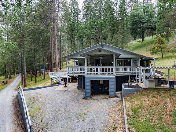 Beautiful mountain estate in desirable Hanson Ranch gated neighborhood. This property has it all! From the immaculate home to the 3 car garage to the RV carport to the outdoor covered kitchen to the huge workshop to the beautiful creekside setting to the private gated neighborhood and so much more. Spacious master suite with duel sided fireplace, slipper Tub, marble topped vanity and huge walkin closet with custom wood cabinetry and skylight. Second master bath has glass/marble shower and heated marble flooring. Gourmet kitchen has Kraft Maid cabinets, silestone counter tops, recessed lighting and Kenmore appliances. Open single level floor plan with downstairs bonus room, patio and fountain. Extensive crown molding, duel pane Simonton windows and sliders, whole home central vacuum and hard wired security and fire alarm system for the house garage and shop finish this property nicely. There are so many more highlights that you'll just have to see for yourself. Please read attached amenities list and don't forget to watch the virtual tour.