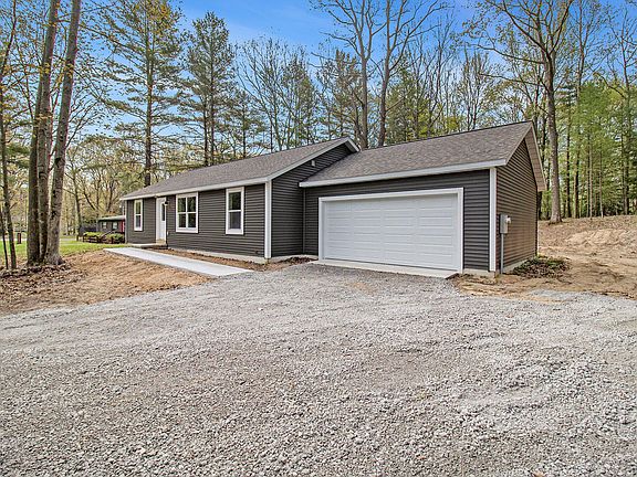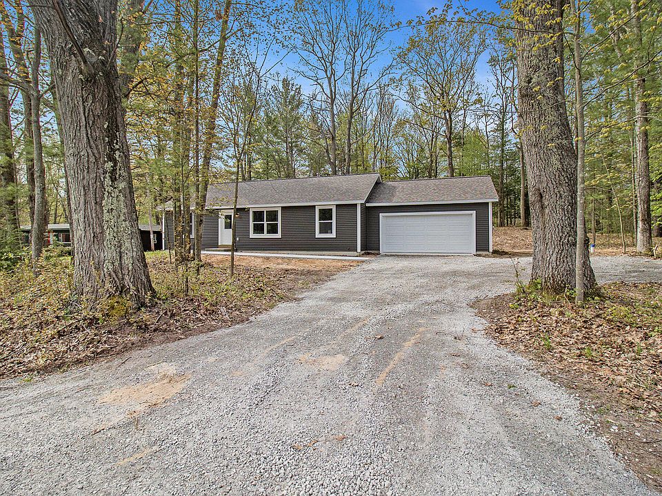 This 1200SF+ ranch on a half acre wooded parcel in the heart of Hamlin Twp is ready for immediate occupancy! A spacious 3 bedroom/2 bath design provides a central great room to gather between the primary bedroom and additional bedrooms or home office spaces. The bright kitchen with center island and eating area are outfitted with granite tops and stainless appliances. The attached garage leads to a flexible mudroom and laundry that enter directly into the kitchen. Storage is found in abundance throughout this home, with a large pantry; entry closet; linen closet; storage closet with crawl-space access (For MORE DRY STORAGE!); and large closets in each of the bedrooms. This is the perfect setting for relaxing, outside living spaces and the convenience to all that Ludington has to offer!