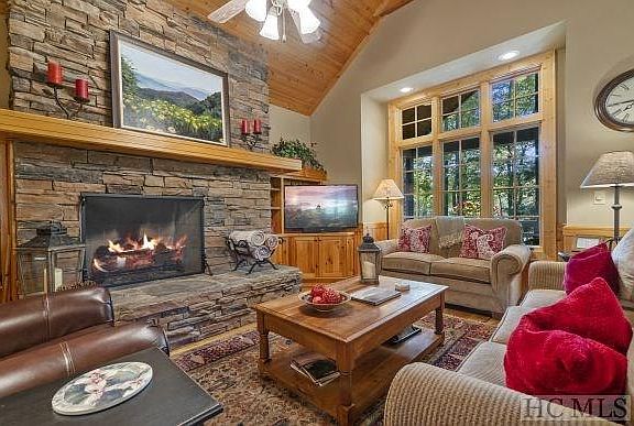 LOCATION & VIEW *** FURNITURE INCLUDED***VALUE PRICING *** Great TURNKEY opportunity to enjoy a choice, well located, furnished (with a few exceptions) townhouse/condominium overlooking the 2nd fairway of the award-winning Trillium Links golf club. Great hardwood floors (some currently under carpet) in a very clean well-maintained townhouse. Three-bedroom, three-bath with a bonus room currently configured with two more beds! Whether sitting by the great stone fireplace in the vaulted wood-paneled living area or watching golfers while sippin' and sittin' on the porch, this is a great place to entertain or just relax and enjoy the mountains. It boasts close walking distance to the Clubhouse, Pro shop, outdoor tennis courts, and pool, and is centrally located. NO MEMBERSHIP REQUIRED, but for those interested, an optional Club Membership would include generational privileges and all of the unmatched Trillium Links & Lake Club family-friendly amenities, including deeded lake access.
