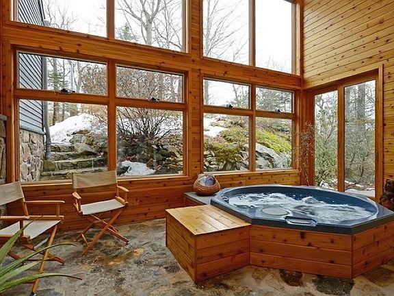 Captivating lakefront on a 63 acre spring fed pond. Stunning contemporary surrounded by scenic nature and incredible sunset views. Tranquil lifestyle, private setting. Hike, swim, fish, kayak - 1 hour to NYC. Sleek elements of Frank Lloyd wight architecture. Glass foyer, 2 story sun room with hot tub, 3 season screened porch all overlooks deck, dock & woods. Floor to ceiling wrap around windows from living room with fireplace, dining room, to family room. Kitchen is central to the open floor plan with huge walk-in pantry. First floor office/4th bedroom and full bath. Open den/library with stairs to second floor master suite with huge walk-in closet and full bath with spacious shower, jet tub & double sinks. Second & third bedrooms with loft and full guest bath. Third level walk-up to exercise room, laundry room and walk-in storage. Sophisticated style, serene waterfront location. Access to Lake Hopatcong thru Byram Bay Beach Club and enjoy 9 mile lake with restaurants and entertainment. Water ski, jet ski or travel 30 minutes to major ski, golf & spa resort. For more information or to arrange a showing, please contact Kathy Courter directly at 973-420-0022.