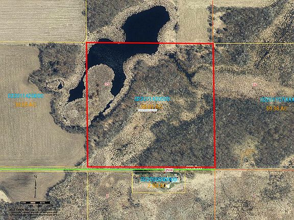 Recreational land with pond, other wetland and a high ground peninsula on the west side and heavily wooded on the southeast side.