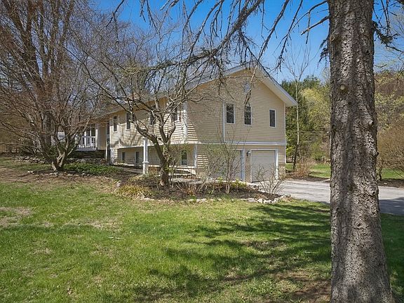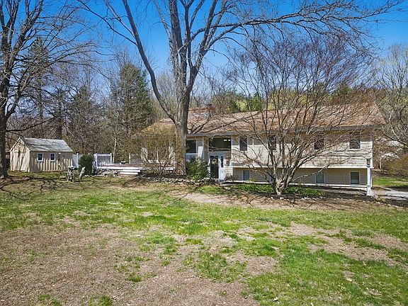 Welcome to 61 1/2 Heald St, Pepperell, MA! This stunning 58ft Contemporary home boasts impressive cathedral ceilings and a wealth of custom features. Set on a private, level 1+ wooded lot near Rt 113/111, the property provides both tranquility & convenience. The expansive living room features a floor-to-ceiling brick fireplace, built-in bookcases w/ a library ladder, & a double set of large sliders leading out to a wrap around Trek deck ideal for outdoor entertaining. The spacious kitchen includes a 12x10 eat-in area, SS appliances, gas stove, & an additional fireplace making it both functional & cozy. The 14x12 primary bedroom offers a built-in desk area, walk-in closet, & full bath. The walk-out lower level has a family room plus a generous size laundry room w/ a utility sink. Additional highlights include hardwood flooring, efficient mini-split air conditioning & Navien tankless heating system, a whole-house Generac generator, newer roof, new front brick walkway, & a stunning yard!