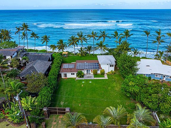 Escape to the serene beauty of the North Shore at this stunning 5-bedroom, 4-bathroom oceanfront retreat in Haleiwa, Hawaii. Nestled on a private, fenced property with direct access to a white sand beach, this home combines classic island charm with modern comfort. Whether you're here to surf world-renowned breaks or relax with family, this spacious home offers the perfect getaway.
