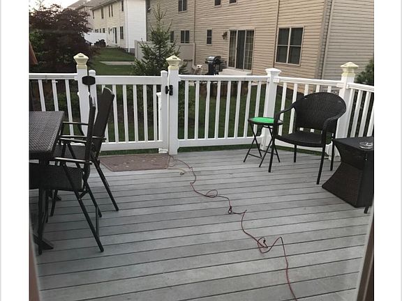 Neutral tones throughout with New carpet and beautiful hardwood floors, this home is truly move in condition. Stainless Steel appliances included in the large eat in kitchen complete with an island and pantry. The maintenance free deck is terrific for morning coffee or quiet evenings surrounded in a calm and peaceful setting. The master suite includes a luxurious spa like master bath featuring a separate soaking tub and shower, his and her vanities, and linen closet. The 2nd level laundry is such a bonus, no more carrying baskets up and down steps! The upper level has brand new carpet and generous room sizes. Additional living space in the finished lower level offers flexibility, as a game room, play room, or office- whatever your lifestyle needs. Enjoy the Community Swimming Pool and Club House access Also.