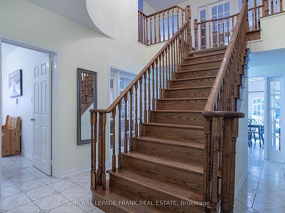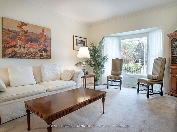 The Welcoming Front Porch offers shade and shelter to enjoy the Landscaped gardens watered by the In Ground Sprinkler System. Inside the vestibule is a double closet and with a French door which leads to the Foyer with a stunning Scarlet O'Hara Staircase. The main floor 9 Ft. Ceilings accentuate the generously proportioned rooms. The Formal Dining Room and spacious Living room flank this impressive staircase. The dream Kitchen with Wall Pantry, Peninsula has a swing door to the Dining Room and Garden Doors with west facing windows offer lovely views of the Deck Patio, Pool and Ravine. The Kitchen overlooks the Family Sized Family Room with a Wood Burning Fireplace. Double French Doors lead to the Dining Room, Kitchen, Deck and Second Floor Study. The Second Floor features a Principal Bedroom retreat complete California Shutters, a raised Sitting Area, a walk in Closet and a 5-piece bath including a double vanity, Jet Tub and Glass Shower Stall. The Study welcomes you with Paneled Walls, Parquet flooring a Vaulted Ceiling plus a lovely view of the backyard Oasis. Natural light streams in through a Skylight shared by the 3 Floor Loft. The 3rd Floor Loft with Bedroom, 4-piece Bath and sitting area offers endless possibilities for family living: Teen retreat, Nanny's quarters, In-Laws or Guests. An Unspoiled basement is ready and waiting for your design ideas. Meanwhile, save on a storage unit with room for all your belongings. Note: 200 Amp Electrical Service and a roughed in 2 Piece Bath.
