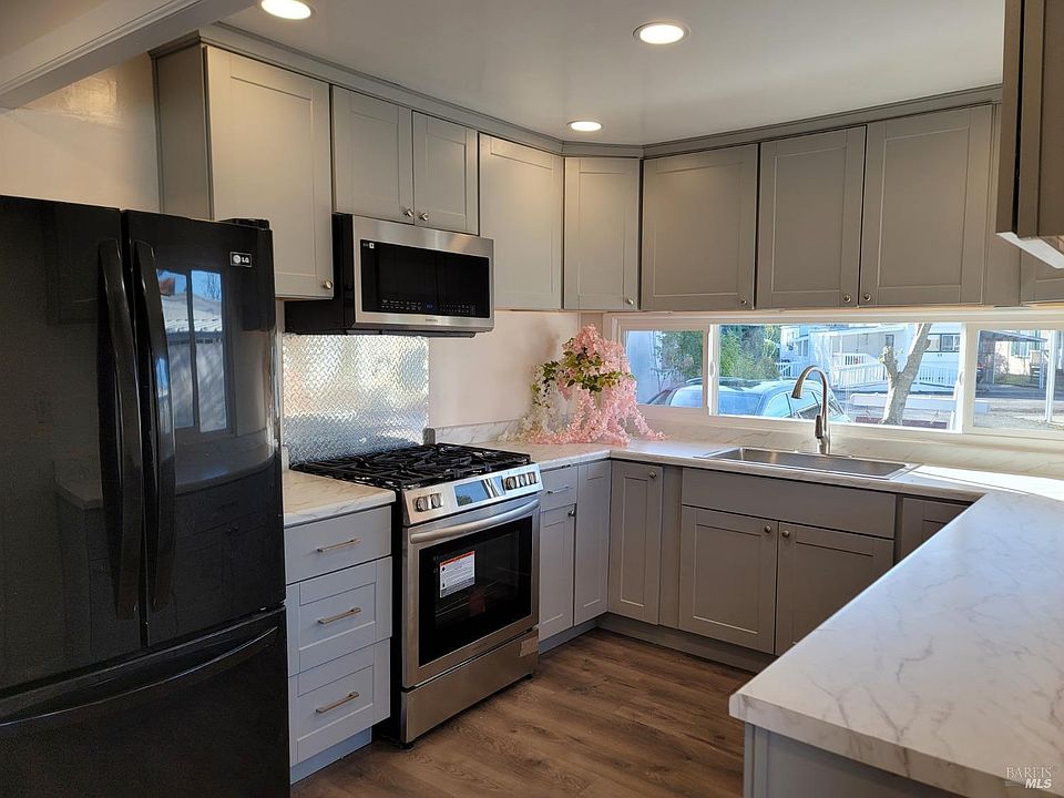 - Included: Free-Standing Electric Oven, Free-Standing Refrigerator, Gas Water Heater, Microwave, Washer/Dryer Stacked