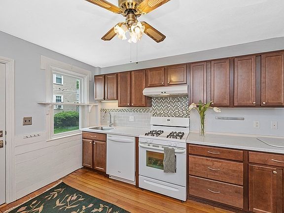 Looking for a special condo with character that feels like a single famiiy? The condo's separate entrance leads to a large living room warmed with nice hardwood floors. The eat-in kitchen has been updated with great cabinet space, a sea glass backsplash, corian countertops and gas stove. It features 1850 slatted wainscotting, some exposed brick and a side door to the driveway. The owners smartly took down a wall to expand it and added a 1/2 bath to this level. Upstairs you will find two nice sized bedrooms with hardwood floors- the master has a separate office space! And there is as a large full bath and linen closet. There is a full basement for storage and laundry. PLUS you get 2 parking spaces and both private and shared backyard space! This unit owns the large shed in the back (16' x 10') which has a potting bench and lots of room to store yard/ shoveling equipment. Located in an A+ location! OFFERS ARE DUE TUESDAY AT NOON, (Sellers have the right to accept an offer earlier)
