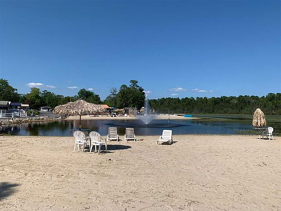 EASY FUN LIVING!!! There is so much to love about Holly Lake Resort!! A gated community with a gorgeous pool, boating & fishing, clubhouse, lake & beach, bonfires, swim parties, fun bus trips to AC or CM and more fun-filled activities for all to have!! What a beautiful place to be to celebrate living well!! This classic 2 bedroom, 1 bathroom, beachy-home with a spacious Florida room (pull out sofa bed) is all you need to feel comfortable!! Step outside onto the large front covered deck 10x20 with a water view of the lake and enjoy an evening candlelight dinner for 6-8 of your family/friends!! Maybe even sit on the back deck by yourself and quietly read your favorite novel!! You own the land and you own the unit!! How exciting!! No ground rent!! This resort is open 9 months (March 1st to Dec 1st) The park is accessible to owners during the winter months and the main bath house is open year-round!! Call today, this property will not last long!!!