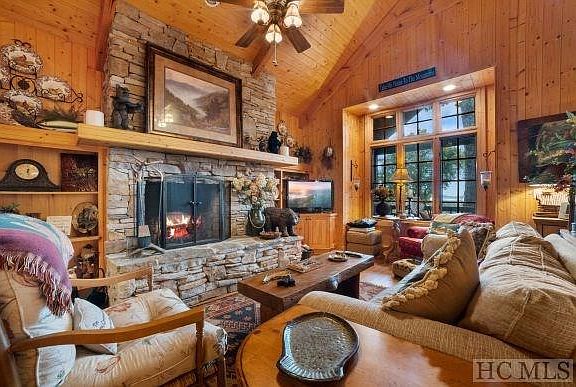 - Fireplace: Stone, 2 or More, Gas Logs, Living Room, Wood Burning, Deck