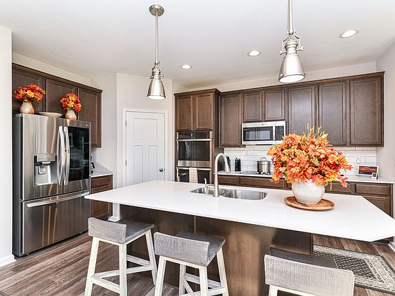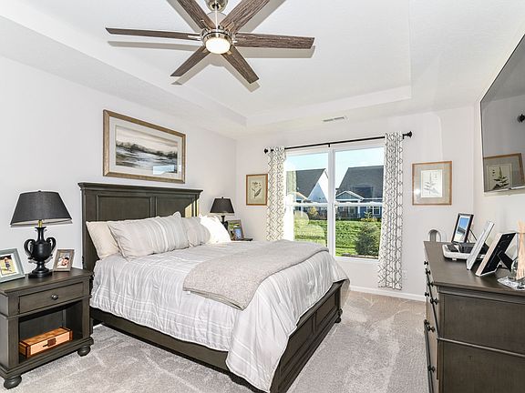 Gorgeous, NEW construction, Low-Maintenance! This paired patio home features a Split Floor Plan with two bedrooms with en-suites and a hall half bath! An Open concept floor plan accentuates the spacious great room. A chef's kitchen is the heart of the home with a large island with seating, double ovens, pantry and adjoining Breakfast Room. The Primary Bedroom has a walk-in closet and well-appointed bathroom offering a secluded retreat at the end of your day. Beautiful French Doors give the office privacy without feeling confined. The covered patio is extended providing extra space to entertain or enjoy the stunning midwestern sunset. Also included is wiring for an invisible fence and an irrigation system you can control from your phone! Lawncare, snow removal, and exterior maintenance is taken care for you! Community Pool and more!