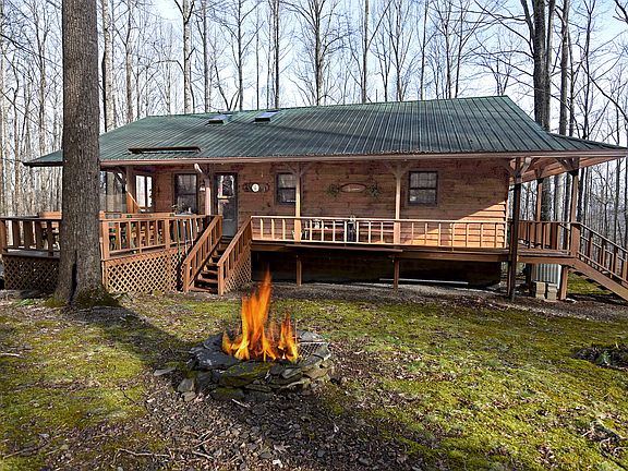 Wildlife Abounds In this Trackrock Community that Joins US Wilderness. A True Mountain Home.. 3BR/2BA on 1.95 Acres of Hardwoods & Big Boulders. 3 CAR Garage in lower level Plus detached RV Parking Carport. No Grass to mow. Custom Cabinets and lots of closets & storage. Generous Master Bedroom, Double doors throughout the house leads to the full wrap porch and Lovely Screened porch. Great Room offers Vaulted Ceiling with mix of sheetrock and wood. Chair Lift from lower level to main floor assists with mobility. Laundry on Both floors. Private exit for lower BR. Large workshop area. Open Deck and Rustic setting.