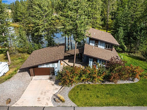 Just Minutes from downtown Bigfork sits this stunning mountain modern home. Built in 2017, this high-end 3 bedroom, 3 bathroom house features an oversized detached garage with a covered breezeway. As you step inside, an abundance of natural light filters through floor-to-ceiling windows with breathtaking Swan Mountain views. An open floor plan welcomes you into the gourmet kitchen with large walk-in pantry. The master bedroom view will leave you speechless, complete with in-suite bath and walk-in closet. The comfortable living area walks out to a wrap around deck with a Montana dream back yard. A walkway to your private dock and shared pond is an outdoorsman and bird watchers' paradise. Hand laid herringbone tile flooring and many other custom features.