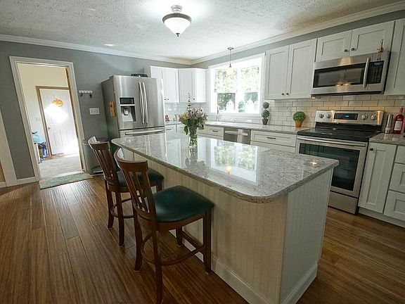 Privately set country cape with large attached garage, breezeway/mudroom and attached screen porch over looking garden pond with water fall. Great layout from kitchen to front to back living room. Hard wood and new laminate floors. Hardwood floors in front to back master bedroom with master bath. Master bedroom also has a good morning balcony that overlooks private back yard. Nice mature landscaping and storage shed. level yard and long paved driveway for privacy. Plenty room for the whole gang. Newer Furnace and Gas hot water heater.