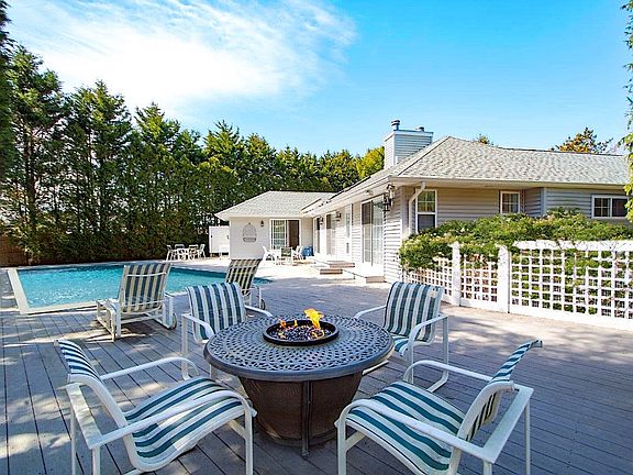 Rental Registration #: RP231152 Completely updated throughout, this three-bedroom, 3.5 bath centrally located in near-north Bridgehampton residence with community tennis is available as a summer rental. The open floor plan offers a large great/living room with fireplace, a modern open kitchen with all new stainless steel appliances, bar seating and open dining, both common areas with sliders leading to the back deck with retractable awning, barbeque, fire pit, and heated salt water 15'x30' pool. The spacious primary bedroom suite with walk-in closet, two guest bedrooms with shared a bathroom, and the connected half-pool bath occupy this easy-living first floor. The over-sized finished lower level with full bath and walk-out offers a television den and bonus rooms. Community tennis courts and a short drive to the Hamlet of Bridgehampton or the Village of Sag Harbor make this newly listed rental ideal.