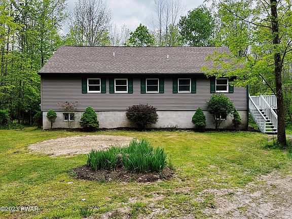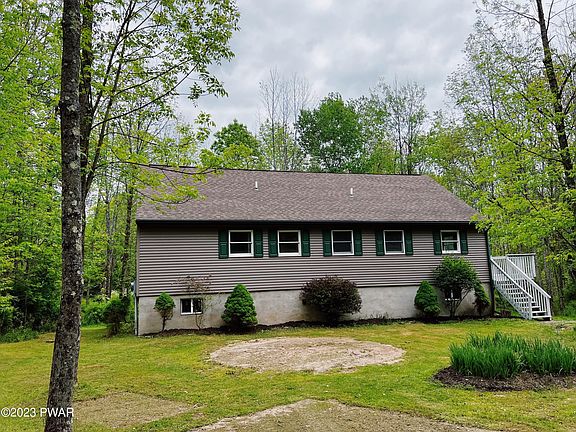 Take a Look at this Secluded Country Oasis on 4.95 acres! With Mature Trees and a Stone Wall leading to your long private driveway, this property offers 3 bedrooms with plenty of closet space, 2 baths including a primary suite, Large Kitchen with S/S Appliances, Formal Dining Area and Living Room all on the Main Floor! Entertain Family and Friends on your Wrap around Deck and enjoy all that nature has to offer! A Perfect family setting for the kids to play outside while the pets have ample space to run! A full walk out basement may be finished for additional living space, office, or large family room / game room. Bring the toys and enjoy country living today! Wallenpaupack Area School District. A FREE Home Warranty is included with the sale of this property!, Beds Description: Primary1st, Baths: 2 Bath Lev 1, Eating Area: Formal DN Room, Eating Area: Modern KT, Beds Description: 2+Bed1st