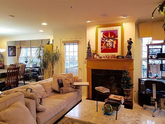 Madison design builder's model end unit with all the bells and whistles. Surround sound system on all 3 levels, recessed lights, crown molding, home security system and much more. Townhouse is elevated from the boardwalk with unobstructed water views from all the rooms and additional windows at the side to enjoy the greenery and shade in the summertime. Granite counter tops, stainless steel appliances, fireplace with wood mantle, tiled and hardwood floors, large master bedroom with vaulted ceiling and ensuite bath with jetted tub, shower stall and dual vanity. Boatworks is the only private townhouse community of its kind in Bayonne. It is close to the 8th St Light Rail with connections to PATH train to NYC, Newark and Hoboken. Buses to Port Authority and downtown Manhattan nearby.