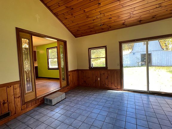 Nice sized 3 bedroom ranch on 2.3 acre lot on a dead end town maintained road. Large living room with hardwood floors, open concept dining/kitchen/sun room. Bedrooms were carpeted but now waiting for you to add the flooring you want. Oversized attached 2 car garage on a level lawn. Land goes behind home up slope. Barn is behind house easy assess to back acre. Full basement with plenty of potential for more living space, Laundry hook ups, bulkhead, and room for storage. Home is waiting for some renovations. Sold as is.