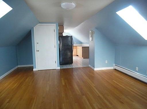 Ready for occupancy. This bright & sunny third floor one bedroom apartment features living room and bedroom with hardwood floors and skylights. Tile kitchen with range and refrigerator. Coin-op laundry available and one off street parking space.