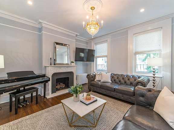 Extremely rare-to-market, perfectly North South facing luxurious brownstone. Elegant, move-in ready townhouse straight out of Architectural Digest. Gut renovated by renowned Stackpole Contracting, this 3 bed/2.5bath brick-faced beauty sits on a uniquely large lot (22 x 80) just steps away from Van Vorst Park, Liberty State Park, and the Grove Street Path in the historic district of downtown Jersey City. Enter through the blue door into a home akin to a high-end boutique hotel with no expense spared: top of line stainless steel Thermador appliances, custom inset Amish constructed cabinets, Quartz countertops, Restoration Hardware lighting, original marble fireplace from the Plaza Hotel in NYC, and custom California Closets throughout. Custom trim / molding in every room, pocket doors, and original hardwood floors help the modern home retain old world charm. The primary suite features both a double vanity and double shower with Grohe fixtures. Two equally sized south-facing secondary bedrooms offer plenty of closet space. Brand new roof installed in 2019. Recently refinished stairs. Floor-to-ceiling sliding glass patio doors in the kitchen let in an abundance of natural light and open onto a Trex deck. Large fenced-in yard and completely rebuilt 200 sq foot accessory building with Mohawk luxury vinyl plank floors and skylight that can be used as an office, she shed/mancave, or playroom. Every aspect of the home was thoughtfully planned and constructed. Less than a 5 min walk to Itto Sushi, 99 Ranch, Taqueria Downtown, and Razza Pizza.