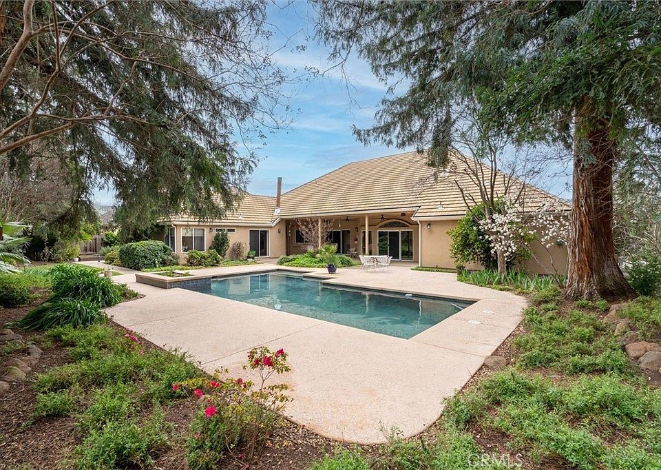 This exceptional residence, spanning 4 bedrooms, 3 bathrooms plus an office, and an impressive 4044 sq ft, seamlessly marries opulence with sustainability. The home stands as a beacon of eco-conscious living, powered by Owned solar panels that redefine the standard of modern environmental responsibility. As you step into this magnificent abode, a grand Mahogany column extends a warm welcome, setting the tone for the luxurious atmosphere that permeates throughout. Mahogany cabinetry graces every corner, adding an elegant touch to the interiors. The split floor plan, complemented by newer tile and wood flooring, ensures privacy while soaring ceilings contribute to an air of spaciousness in every room. The formal living room, adorned with a fireplace, effortlessly blends with the family room, creating versatile living zones to suit any occasion. The expansive kitchen, a true culinary haven, boasts granite countertops, an island, and dual ovens, complemented by a convenient walk-in pantry. The master suite stands as an opulent retreat, featuring a gas fireplace, his and her closets, exquisite wood flooring, and a spa-like walk-in shower. The perfect balance of comfort and style is achieved, providing an unparalleled living experience, the whole house fan, whole house vacuum and water softener are additional perk to this home. Step outside into a sun-soaked paradise where an inground Gunite swimming pool with waterfall awaits, ideal for relaxation and entertainment. The 1/3-acre property deviates from the ordinary, showcasing a beautiful yard hosting a vegetable garden and fruit trees, adding a touch of nature to your doorstep.Practicality meets luxury with a 3-car garage, offering ample space for vehicles and storage. 61 Brookvine is not just a home; it's a statement, embodying a harmonious blend of innovation, luxury, and eco-friendliness.