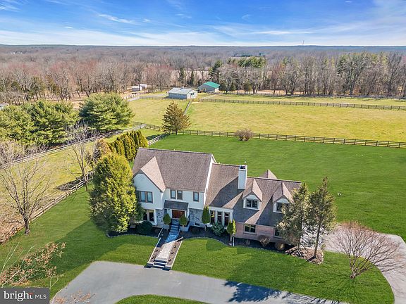 Serenity and tranquility embrace this magnificent country lifestyle property with prime location bordering preserved farmland on a scenic vista in Cream Ridge…the gem of western Monmouth County! Experience the surrounding nature as you pull up on the circular driveway to this truly majestic 5 bedroom 3.5 bath custom Craftsman inspired Colonial home perfectly situated on 3.37 ACRES...this home is truly a showplace for the best of entertaining or relaxation! Highlights of the sprawling first floor with stunning outdoor views from every angle include: amazing gourmet eat-in kitchen w/ center island, fine stainless steel appliances (including a baker’s dream…double oven!), mini fridge, pantry & closet; cozy family room w/ stone fireplace & built-in bookcases & cabinetry; bright, light-filled formal living room w/fireplace insert & grand formal dining room. Not to be missed on the first floor is a spacious wing which includes an inviting bedroom with en-suite full bath & closet…think guest retreat or in-law suite! The first floor also includes: formal entry foyer w/ closet, powder room & laundry room. Cozy second floor with elevated views from every room includes: peaceful main bedroom suite w/ dressing room, renovated full bath w/ soaking tub & shower stall; expansive second bedroom currently used as office w/ impressive unfinished bonus loft; 2 additional bedrooms w/ closets; & full hallway bath. The massive full basement includes a partially finished game/recreation room space as well as handy workshop area for hobbies and crafts. Additional storage and workshop space can be found in the oversize attached 2 car garage which connects to the basement. A manual generator transfer switch has already been installed for peace of mind. Let the pure enjoyment of this property continue outdoors with a delightful covered patio that leads to a backyard area adjacent to preserved pastures. A whimsical path leads to an outdoor sitting area complete with fire pit and shed…think toasting marshmallows or sipping a glass of wine! A remarkable home for all seasons! Meticulously maintained at every turn with improvements & upgrades throughout such as Anderson casement windows, Kohler plumbing details & an abundance of quality carpentry. This scenic fine country property is truly a treasure...your spectacular new lifestyle awaits!