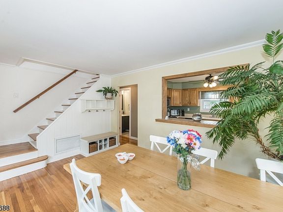 Beautifully updated and expanded Cape cod, boasting hardwood floors, fabulous renovated bathrooms, large bedrooms and a unique floor plan. The first level open concept offers a spacious dining room, updated kitchen with stainless appliances, walk in pantry, laundry area and full bath. Great opportunity to transform additional living area into third bedroom. The second level has 2 large bedrooms plus half bath. Stay cool with central air and enjoy the lovely fenced-in yard with patio and detached garage. Located a short distance to NYC transportation, the town center, Haskell Elementary School and the Back Beach Park. This home is truly a gem.