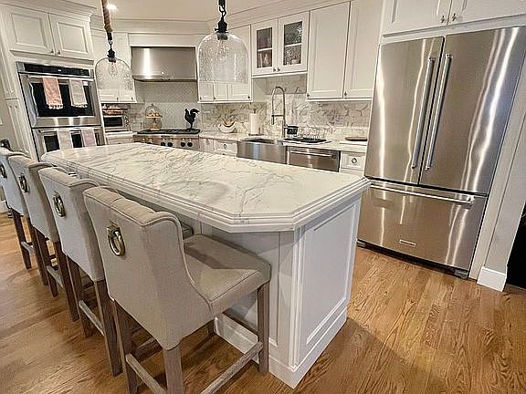 MOVE IN READY! Great opportunity to get into one of the safest towns in NJ! Nothing short of amazing! Large open floor plan. Custom kitchen with professional appliances and marble countertops. Spacious Primary bedroom with walk in closet. En-suite primary bath that boosts luxury; free standing soak in tub and custom shower. Large screened in porch. Lots of closet space throughout the home. Fully finished basement with modern full bath, extra large laundry room, playroom and bar. Perfect for entertaining! Beautiful home nested on a park-like street. Come see today! 908-868-5407