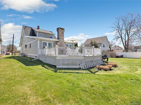 Welcome home to this classic colonial with so many charming features such as brand new front porch and railing, beautiful stained glass window in foyer, crown molding in kitchen and rear bedroom, etc. Formal dining room has French doors with transom window above, leading to massive eat-in kitchen with granite counters, stainless steel appliances, built in wine rack, recessed lighting, bay window, island, and loads of cabinets. Lots of wonderful natural light! Huge family room with gas fireplace, vaulted ceiling, skylights, recessed lighting, and double set of French doors to ample back deck with newer flooring and posts which overlooks the beautiful spacious yard. Main floor bath offers vaulted ceilings, skylight, and wainscoting. Primary bedroom was once two bedrooms and has a double closet, wood floors, recessed lighting, and a ceiling fan. Rear bedroom has wall to wall carpeting, ceiling fan, and access to attic. Other recent improvements include new driveway, freshly painted exterior, and new shed. Hardwood floors on main level. Water heater is five years old and roof is approximately eleven years old. Tasteful window treatments remain. Dining room is wired for overhead fixture. This is a perfect home for entertaining in all seasons!! You will love the bright and open feel to this incredible home! Definitely worth the trip! 2nd floor expansion possibilities and double basement for extra storage. Walk to Russian Beach, park, churches, deli, restaurants, seawall, & school.