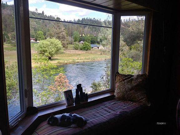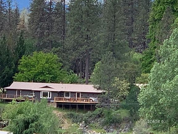 Trinity River Frontage flows right off the newly redone back decks along w/ scenic views of Trinity Alps from this end of the road, spacious 2 bedroom/1.5 bath plus den which could easily be turned into a 3 bedroom w/attached bath & door off the the den. Front door entry w/ slate tile opens into a living/dining room w/ cork flooring, wood beams on the ceiling, Lopi wood stove w/ rock hearth & bay windows overlooking the river for a perfect spot to cozy up w/ a book or watch the wildlife outside. This great Kitchen has a stainless industrial gas range w/ griddle & grill and 2 ovens, built in breakfast bar, bay window, travertine tile backsplash, w/ unique Antique Coldcar has been converted into a pantry. Master bedroom overlooks the river w/ door to access back deck, dual closets, mstr bath & nice light. Circle driveway, fruit tress, front yard w/ fenced in pond fed by the river. Roof has been recently replaced in 2018, new wood storage building, maintenance/work done on septic system & pumped. Detached garage / shop has work benches, work space, roughed in plumbing and room for a car too. Pump house has small holding tank, light & filter.