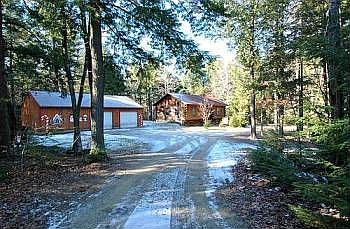 REAL LOG HOME WITH GARAGE & WORKSHOP TUCKED IN ON A PRIVATE 2.3 ACRE WOODED LOT