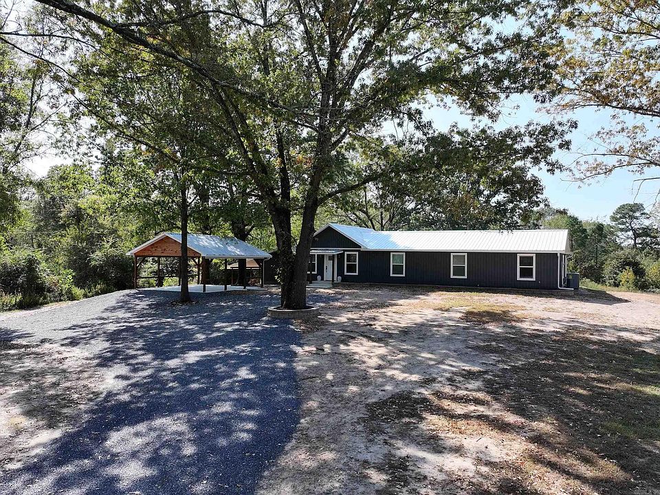 Charming Country Living! This beautifully renovated 4-bedroom, 2-bathroom home offers 1,800± sq. ft. of modern comfort on a countryside lot spanning 4± acres. Every detail has been carefully crafted, with all-new interior and exterior construction, including updated wiring and plumbing. The spacious kitchen boasts brand-new stainless steel appliances, handcrafted cabinetry with soft-close doors and drawers, and elegant granite countertops. A pot filler above the gas stove adds extra convenience, and the bathroom fans even feature Bluetooth connectivity for a modern touch. The primary bathroom is a luxurious retreat with a custom porcelain shower and dual sink vanity, complete with built-in charging ports. French doors in the living room lead to a covered patio, perfect for relaxing as you overlook the expansive backyard and take in the local wildlife. The property also includes a powered outbuilding with plumbing and a lean-to for additional storage. Agent is related to seller.