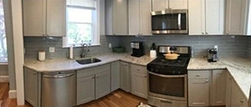 Absolutely Gorgeous 5 room,2 bedroom ,2 bathroom coming available for July 1st.Totally renovated just over a year ago.Beautiful NEW siding,Fabulous Kitchen with custom made cabinets,stainless steel appliances and granite counter tops.Lovely living room,formal dining room,2 good size bedrooms,beautiful bathrooms.Other features include:-lots of natural light,shining hardwood floors,high ceilings,recently painted,central air,washer/dryer,2 parking,huge front deck,smaller pets allowed.Gas stove and new gas heating system.Awesome location,close to Mass pike,Boston,Watertown,Waltham.Also Close to Parks,shops,fine restaurants,Horace Mann Elementary,FA Day Middle and Newton North High school.Available July 1st...A Gem...