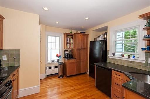 Lovely single FAM on one way street in N Camb, Many updates....2004 new kitchen & bath, many new windows, 2014-new half bath, finished basement. Kit w/ maple cabs, black appl, granite, breakfast bar, rec & pendant lighting, wrking fireplace in LR, wd floors, period details incl oak floors, nat woodwork, box window w/ wind bench, orig china cab, HUGE level rear yard. Very nice fin basmnt w/ exp brick, built-ins & office area, Close to Bike Path, Alewife T, Davis T, Mass Ave, & Rt 2